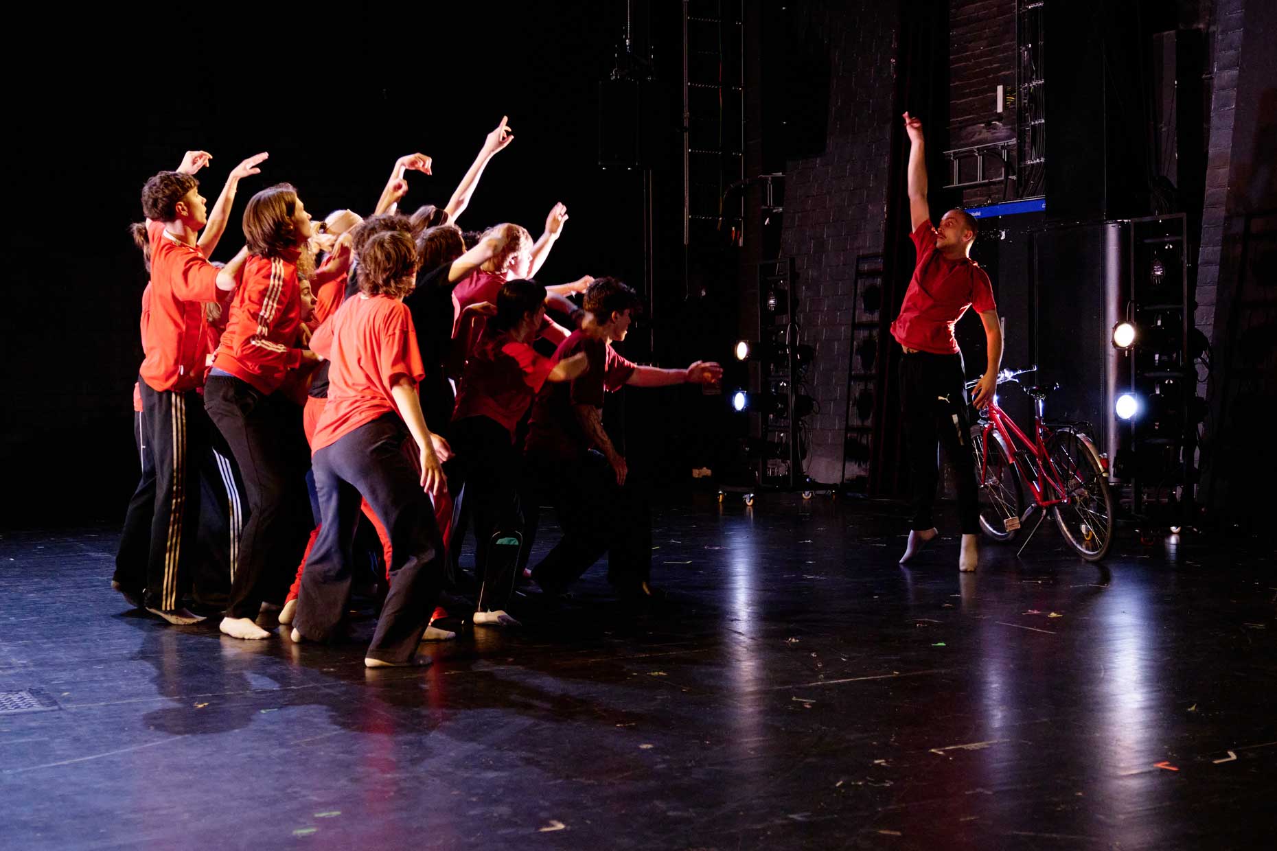 Geschwisterliebe, gibt’s die noch? Wie fühlen wir uns verbunden? Sind wir sanfte Zwillinge oder wütende, tobende Geschwister? Kämpfen wir tanzend miteinander oder eher vereinzelt? Und was ist, wenn ich damit einfach nichts zu tun haben will? In unterschiedlichen Startingpoints erzählen wir von Einsamkeiten und Gemeinsamkeiten, von Zugehörigkeit und Wir-Gefühlen. Gegenwartstexte und eigene Texturen sind Aushandlungsräume. Mit eigener Musik in Stimm- und Körpertext zeigen 20 junge Performer:innen ihre Auseinandersetzung mit dem großen Thema Sister und Brotherhood. Mutiges Verbundensein zeigt sich in unterschiedlichen performativen Situationen mit Livemusik und eigenen Choreografien.